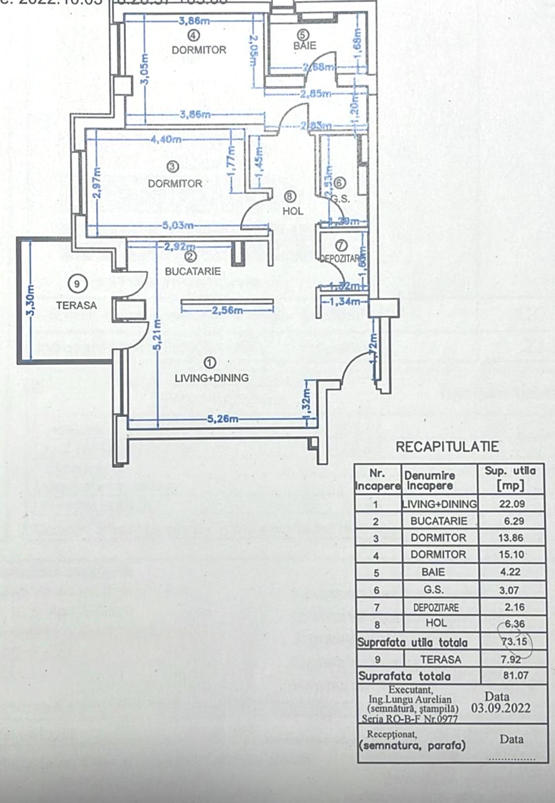 Apartamentul este amplasat la etajul 5, beneficiază de o orientare vestică, oferind lumină naturală și apusuri spectaculoase, și are o suprafață utilă de 73 mp, cu o suprafață totală de 81 mp, incluzând un balcon generos de 8 mp.