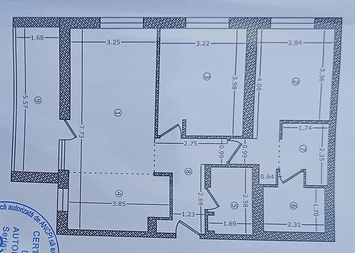 3 camere: living generos, dormitor matrimonial și birou extins (12,74 mp – modificare autorizată)