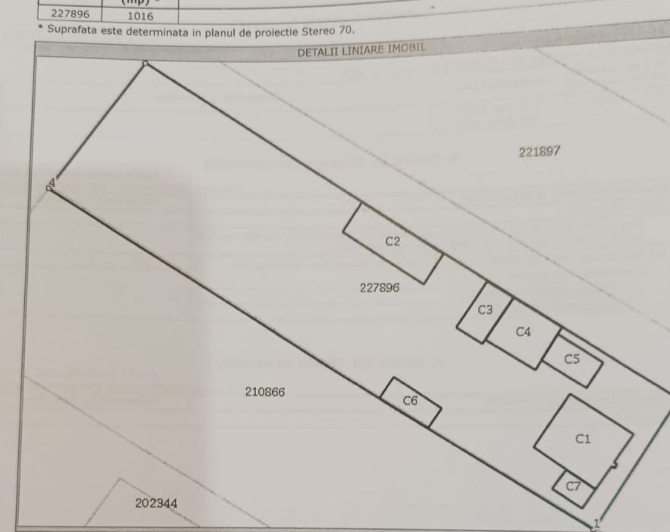 Suprafață: conform actelor 1016 mp